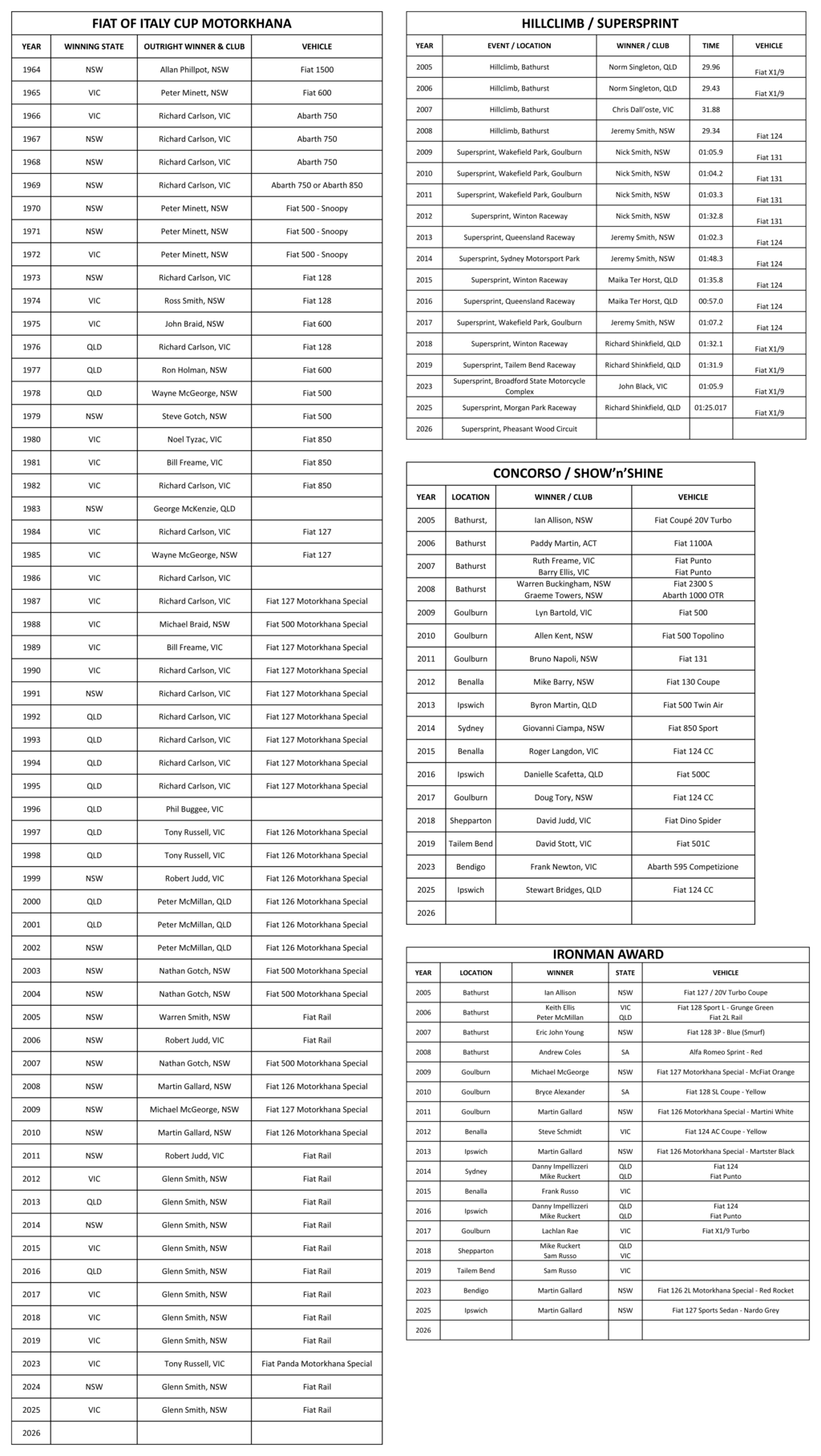 Not sure about something, don’t hesitate to reach out to fiatnationals@yahoo.com.au for clarification before submitting your entry form.